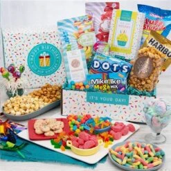 Celebrate birthdays with our Deluxe Happy Birthday Care Package! This visually appealing box is filled with thoughtful birthday goodies, including unique candies, popcorn, and birthday cookies. Send a memorable birthday surprise that will put a smile on their face as soon as it arrives at their door. Happy Birthday!