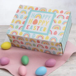 Easter is the time of year when you think of spring, renewal, and celebration! Celebrate Easter by sending some bunny special a care package filled with delicious sweet treats! Inside a happy and fun rainbow-decorated Easter-themed box, you’ll find favorite traditional Easter treats like Peeps marshmallow bunnies and jelly beans and some newer, more unique sweets like neon sour worms and Easter dots. M&Ms and delicious popcorn are also included completing the line-up of perfect Easter treats. Happy Easter!