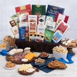 Send them their favorite snacks no matter where they are! Inside this gorgeous basket, we’ve gathered together an unparalleled selection of coveted snacks your recipient will find irresistible. Complete with award-winning cookies, premium sausage, and crisp handcrafted popcorn. A stunning arrangement, perfect for any occasion.