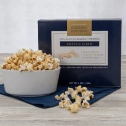 - Sea Salt & Cracked Pepper Kettle Corn by GourmetGiftBaskets.com – 4 oz.