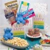 Your birthday gift recipient will feel extra special when they receive this unique gift box filled with birthday-themed snacks and fun birthday extras! The package includes our special mix of birthday popcorn, white chocolate celebration Oreos, milk and dark chocolate cookie bars, a chocolate bar, birthday napkins, and an “Oh Happy Day Candle.” The candle will brighten their day each time they light it and keep the birthday wishes going!
